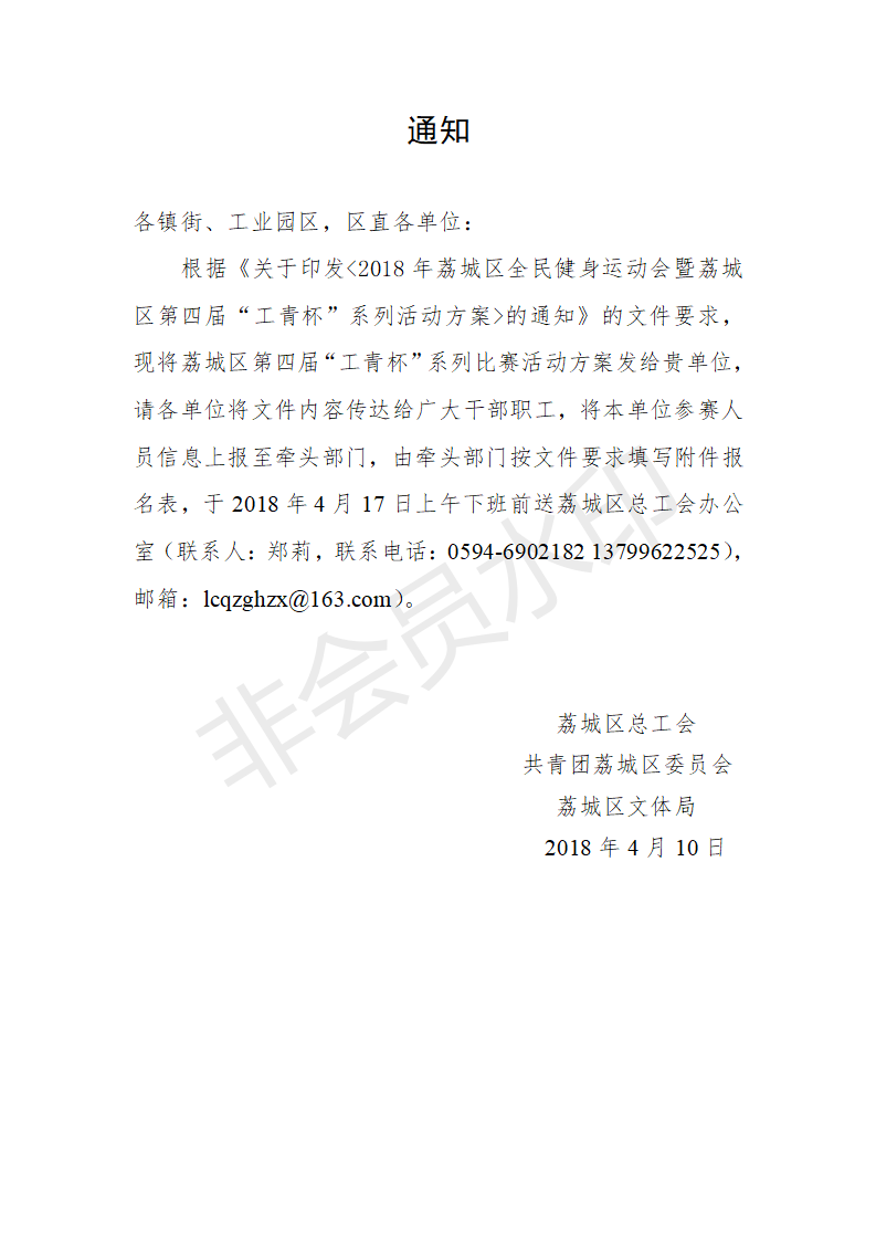 关于印发<2018年荔城区全民健身运动会暨荔城区第四届“工青杯”系列活动方案>的通知