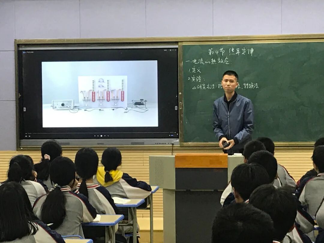 第三节由擢英中学夏晓光老师执教《焦耳定律》,夏老师从生活的我们常见的电饭煲、电熨头入手,为学生讲解电流的热效应,通过试验激发学生兴趣,整节课内容丰富,条理清晰。