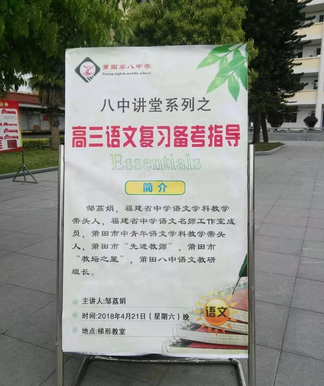 得语文者得天下,得作文者得语文。为帮助高三学子在最后备考阶段理清写作思路,考场上能写出一篇理想的好文章,取得高考语文好成绩,4月21日(星期六)晚6点30分于学校梯教举行莆田八中第二期名师讲堂,邀请了福建省学科教学带头人、福建省中学语文名师工作室成员、莆田八中语文教研组长邹荔娟老师为高三同学做了一场高考作文复习备考指导讲座。